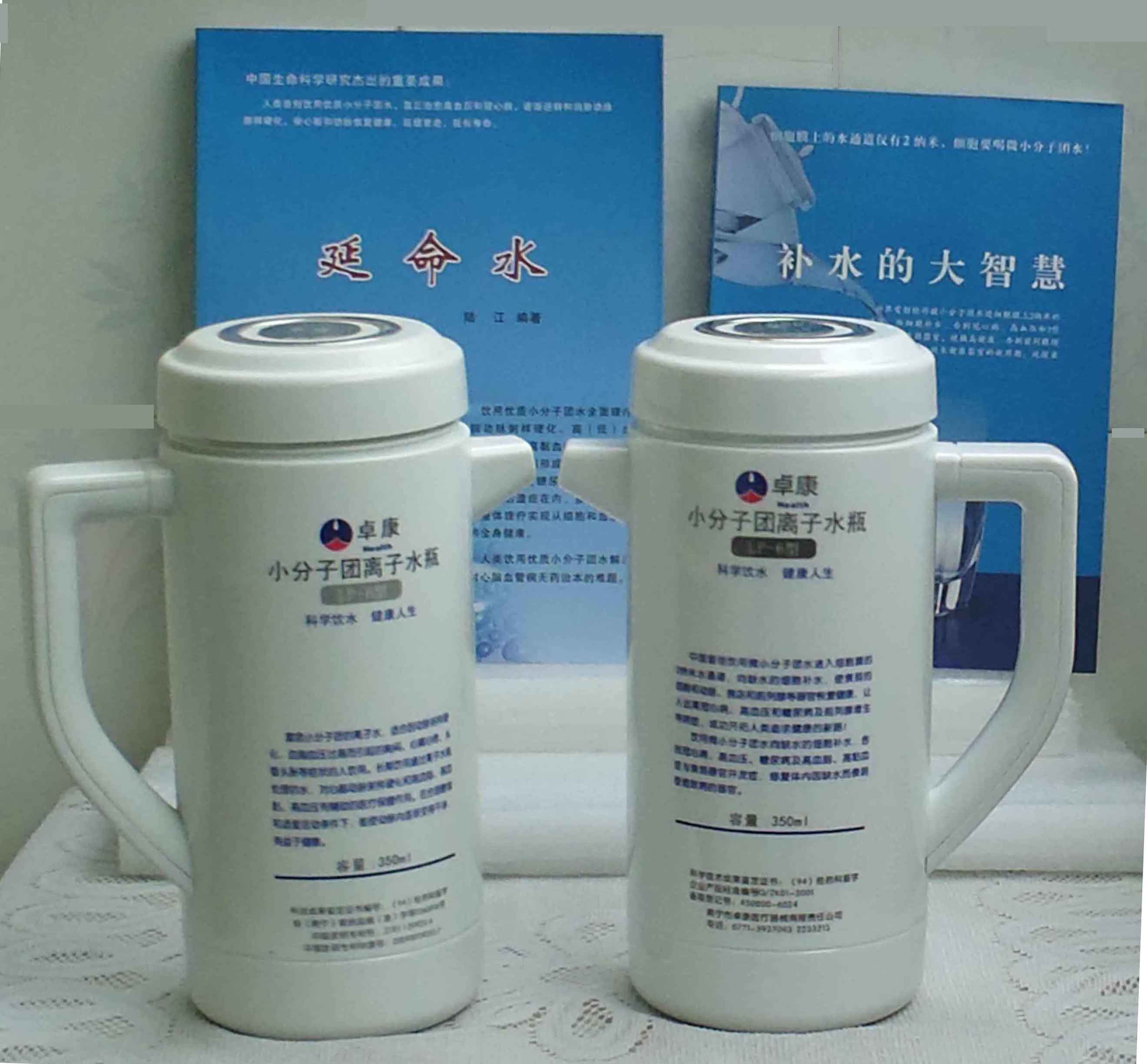 本品大量用戶(hù)的使用效果表明,能治愈冠心病、腦動(dòng)脈硬化、原發(fā)性高(低)血壓、高血脂、高粘血癥、高血尿酸癥(痛風(fēng))和2型糖尿病、衰弱器官并發(fā)癥(前列腺增生、腎衰與尿毒癥)及中風(fēng)后遺癥等療效好。產(chǎn)品配信譽(yù)卡。使用壽命30年,不換芯,易清洗。團(tuán)購(gòu)優(yōu)惠。從郵局匯款,匯費(fèi)1%,地址按本頁(yè)下方地址、聯(lián)系人寫(xiě)。從銀行匯款,請(qǐng)點(diǎn)擊[聯(lián)系匯款]欄,從工商銀行匯款,建設(shè)銀行、農(nóng)業(yè)銀行匯款,均免收匯費(fèi),匯款后20--30分鐘內(nèi)發(fā)短信,可用微信轉(zhuǎn)帳,均免匯費(fèi),微信號(hào)即手機(jī)號(hào)13768308380。匯款后,告知你的姓名和地址,我公司聯(lián)系人手機(jī)號(hào)是:13768308380卓康牌離子水瓶為我公司獨(dú)家生產(chǎn),郵購(gòu)產(chǎn)品配《補(bǔ)水的大智慧》彩印書(shū)一本,另配四季出版社出版的新書(shū)《補(bǔ)水的大智慧》一本,并配光盤(pán)一張(含央視主持人釆訪陸江的對(duì)話視頻)。目前市場(chǎng)和"淘寶網(wǎng)"上有人兜售假冒的偽品,望讀者審察辯別真?zhèn)危旒僬哓飧`假冒本公司的各種認(rèn)證、獲獎(jiǎng)獎(jiǎng)項(xiàng)、專(zhuān)利號(hào)和外包裝盒上的中英文字,包括科技成果的鑒定意見(jiàn)等,請(qǐng)讀者注意防偽。如何識(shí)別假貨?已經(jīng)買(mǎi)了假貨怎么辦?(請(qǐng)點(diǎn)擊[打假掠影][打假掠影])。
